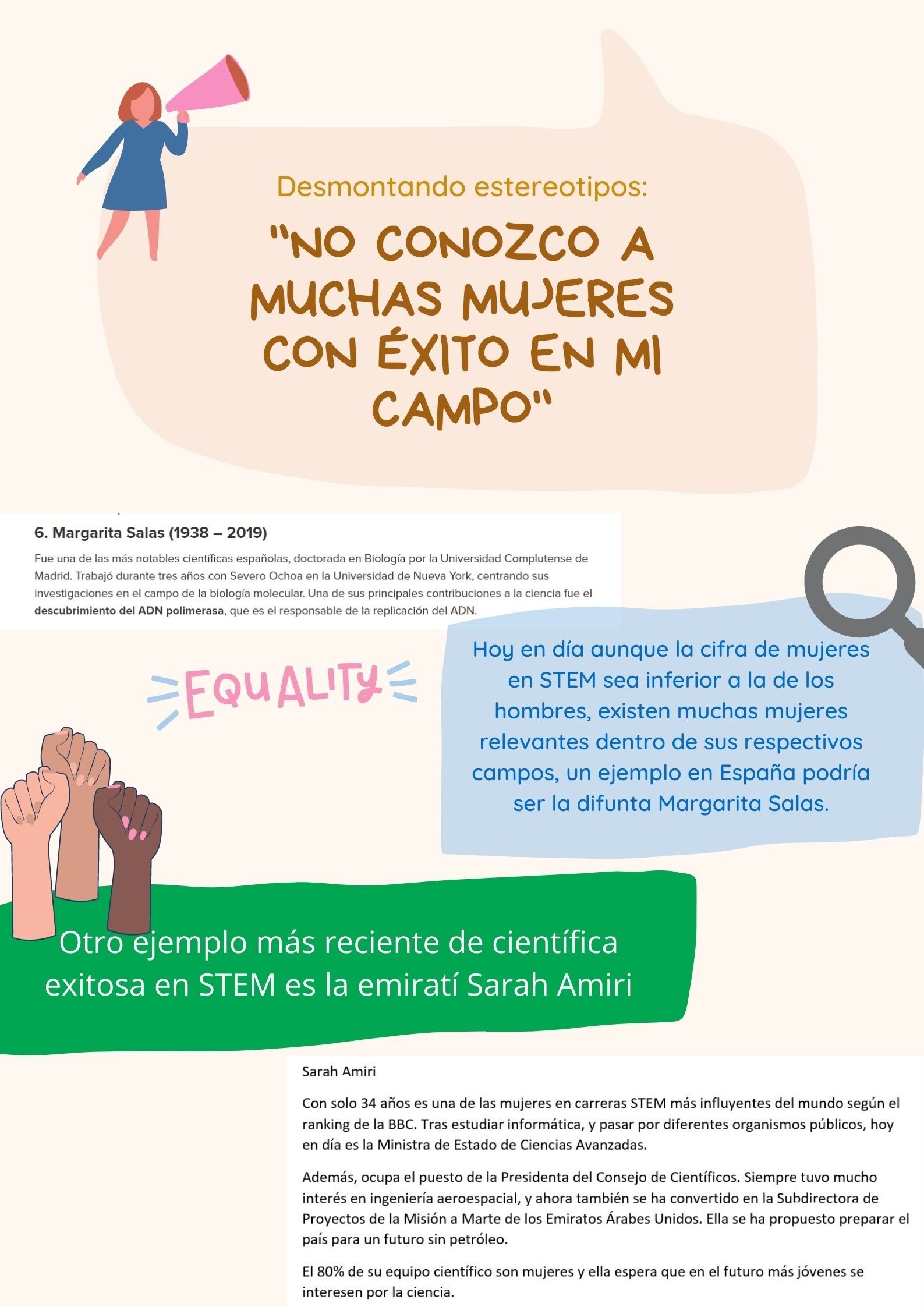 The Spanish team has created this poster about relevant women in STEM, given the challenge to dismount the quote “I don´t know many succesful women in my field”